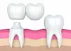 > Le bridge collé : l’élément remplaçant la dent manquante est collé sur les faces intérieures des dents adjacentes (piliers) grâce à deux ailettes métalliques.